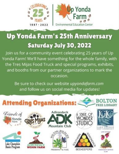 Join us at Up Yonda Farm, Saturday July 30, 10 am – 2 pm, for a community celebration of the Environmental Education Center’s 25th Anniversary! There will be a number of local organizations and businesses set up with booths and exhibits and the Tres Mijas food truck will be on site as well!