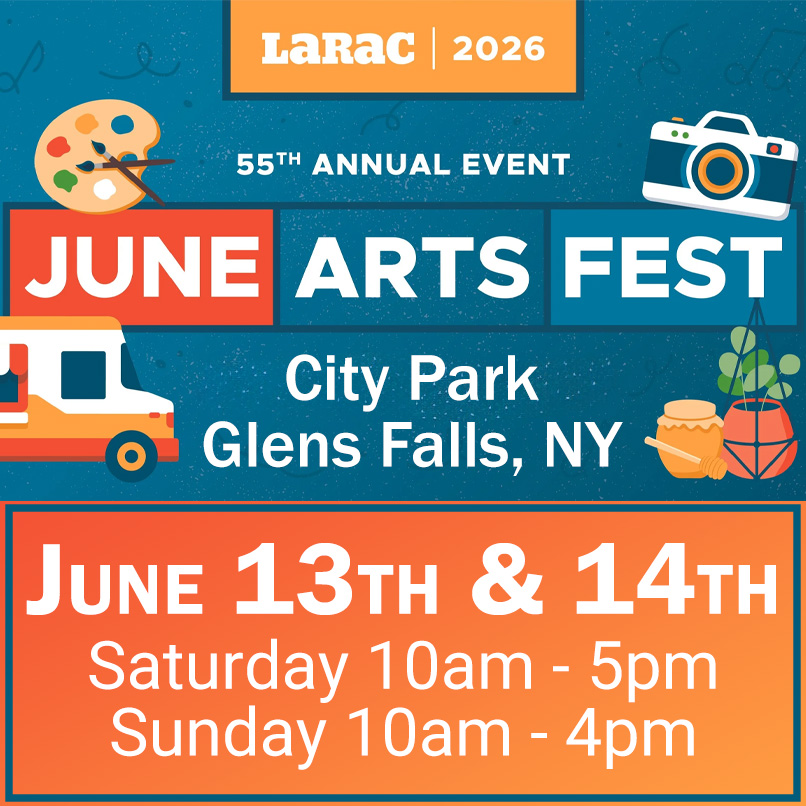LARAC’s 55th annual June Arts Festival features local, regional, and national artists offering a variety of products such as jewelry, home goods, food items, fine art, textiles, and more. The event also includes live music from local musicians all weekend long. Come join us in Glens Falls City Park, on Maple St. across from the Queensbury Hotel!